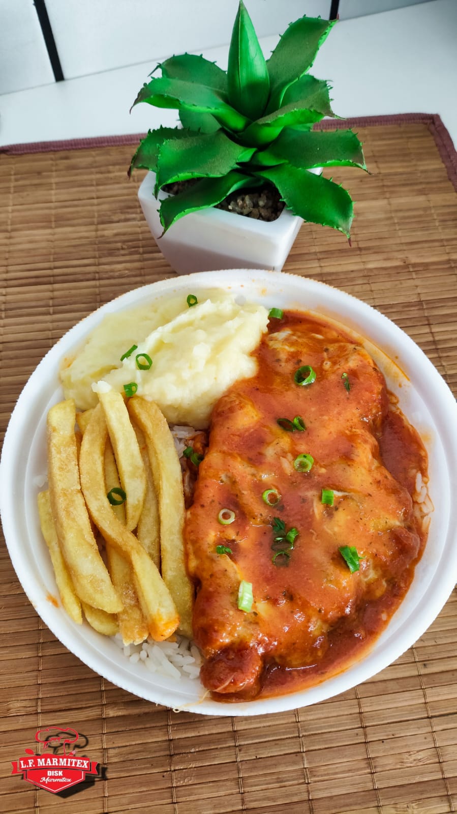 Acompanha: Arroz, feijão, Purê de batata, fritas e salada.