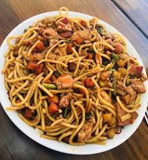 Frango, alface, repolho branco, repolho roxo, cenoura, tomate, beterraba ralada e abobrinha ralada.